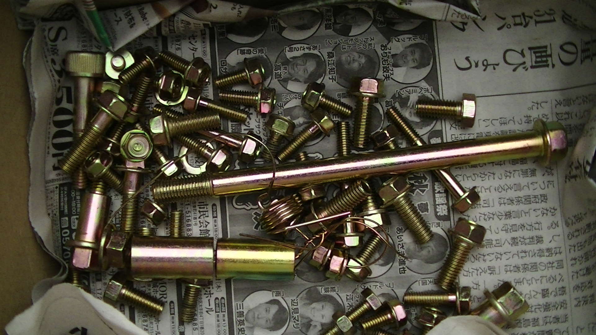 - 上の添付写真は経年劣化したバイクのボルト類です。このメッキの種類はユニクロです。